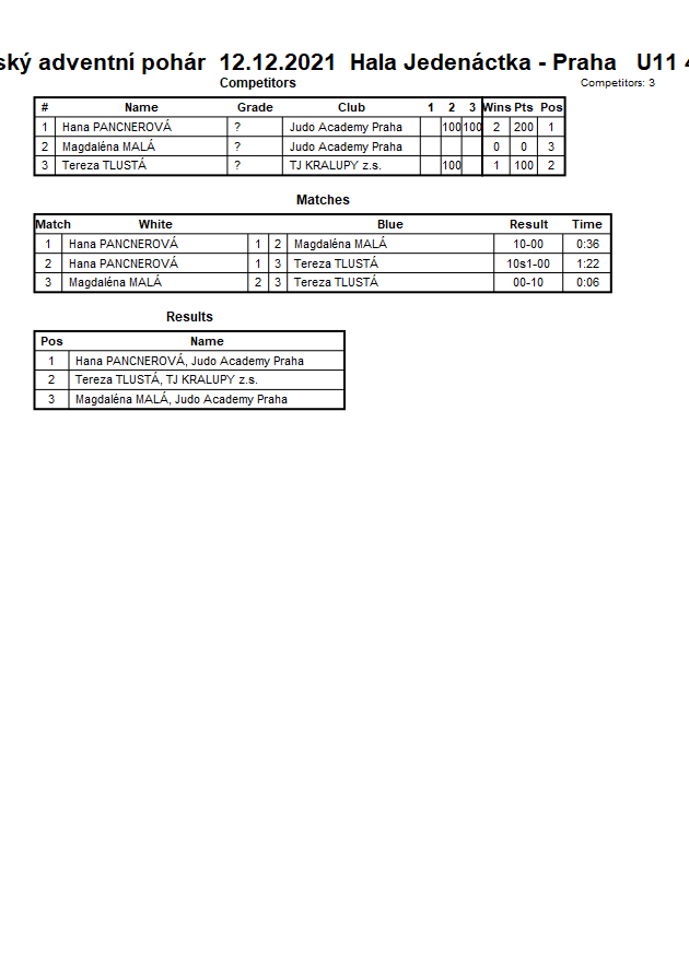 Pražský adventní pohár 12.12.2021 Hala Jedenáctka - Praha