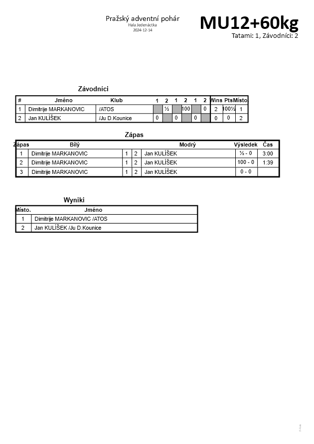 Pražský adventní pohár 2024-12-14 Hala Jedenáctka